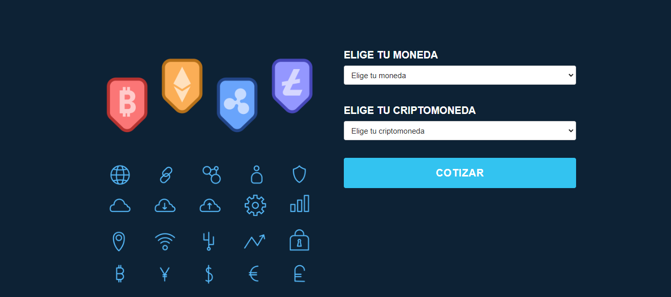 Esta aplicaci贸n web permite consultar en tiempo real el valor de las principales criptomonedas con respecto a distintas monedas. El usuario puede seleccionar la criptomoneda y la moneda de referencia, y con solo un clic obtener el precio.